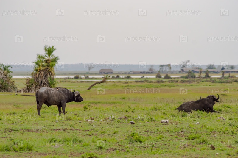 Буффало в саванне Амбосели в Кении