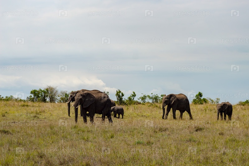 Слоны в Масаи Мара парке на северо-западе Кении