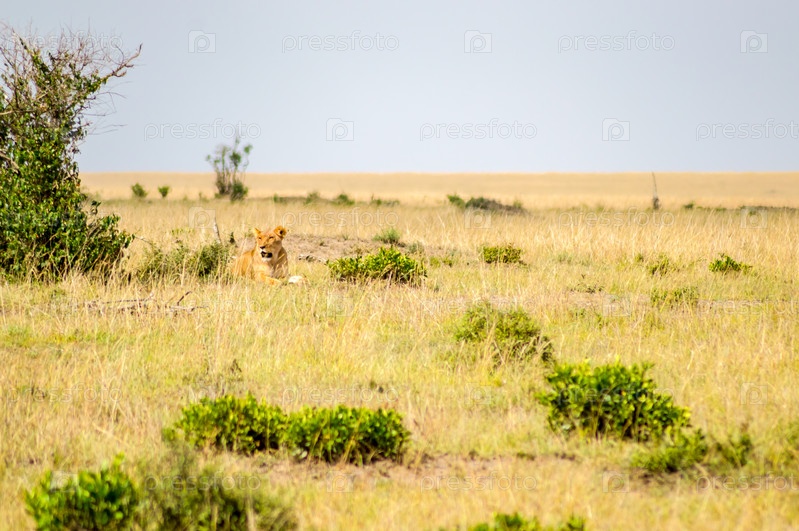 Молодой лев в Масаи Мара парке на северо-западе Кении