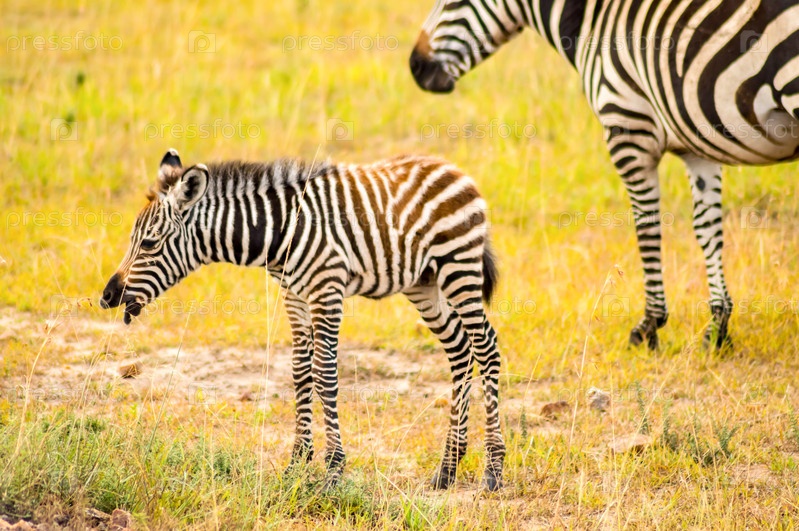 Стадо зебр в саванне Масаи Мара парка на северо-западе Кении