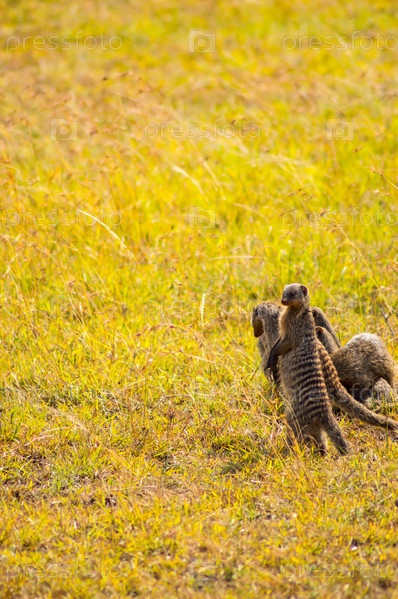 Мангусты в саванне Масаи Мара парка на северо-западе Кении