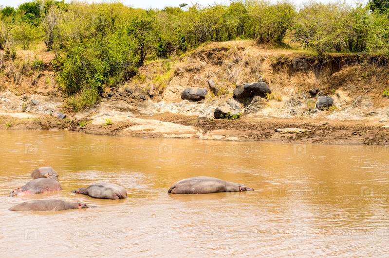 Стада бегемотов в реке Мара в Масаи Мара парка на северо-западе Кении