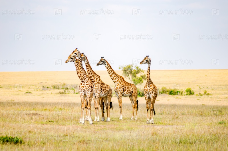 Стадо жирафов в саванне Масаи Мара парка на северо-западе Кении