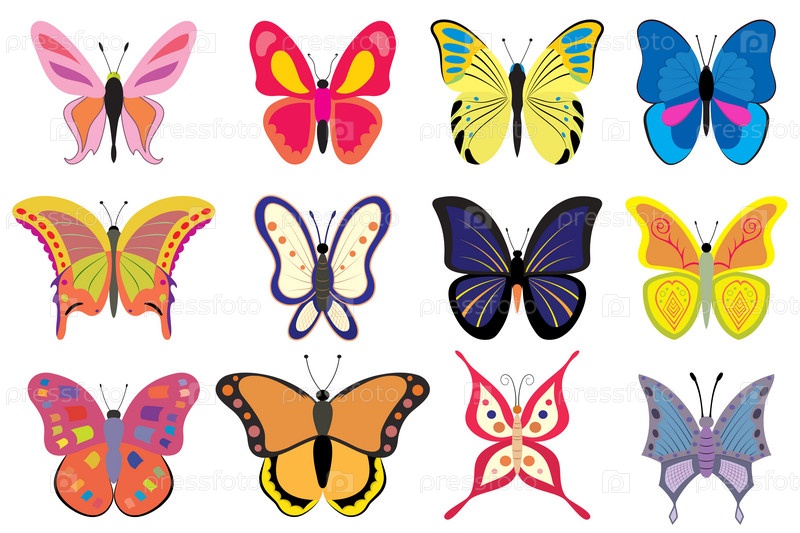 Набор красочных бабочек
