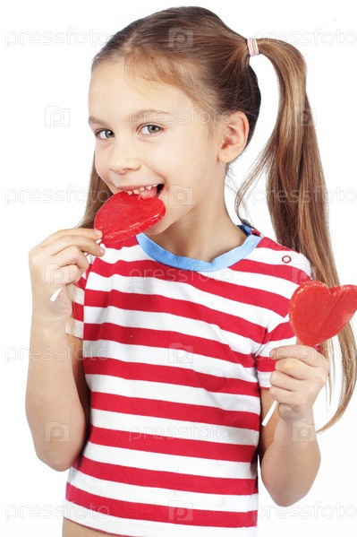 Ребенок, держащий конфеты в форме сердца