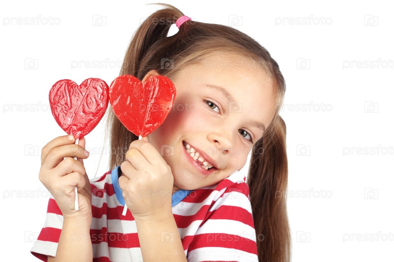 Ребенок, держащий конфеты в форме сердца