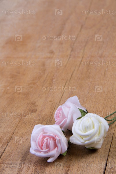Искусственные цветы на деревянной доске