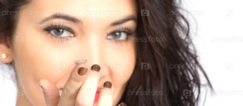 Молодая женщина с контактной линзой