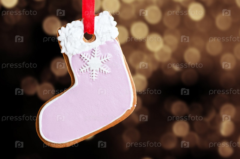 Сапожок из имбирного теста на расфокусированном сверкающем фоне