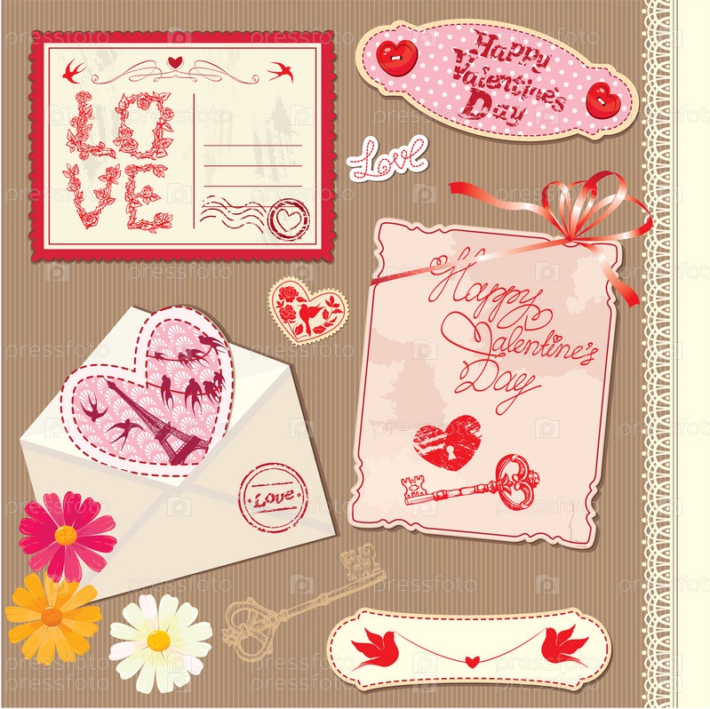 Набор из старинных открыток на день Святого Валентина