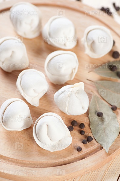 Сырые пельмени с черным перцем и лавровым листом