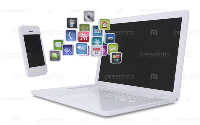 Белый ноутбук и смартфон
