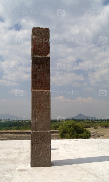 Стелла на территории комплекса пирамид в Теотиуакан, Мексика