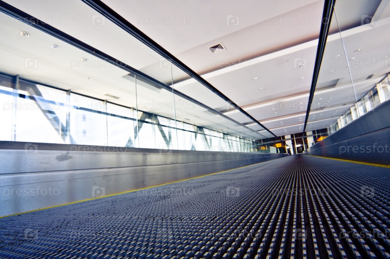 Камера лежит на сером эскалаторе вид в коридоре в офисном центре