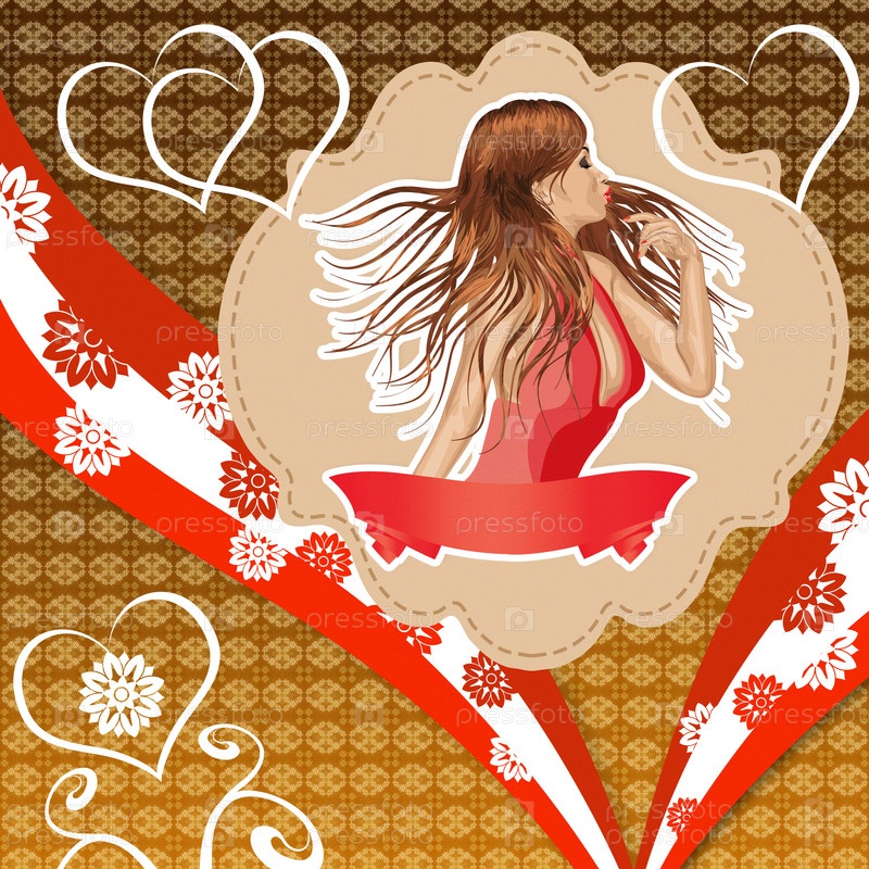 Девушка в красном платье на винтажном фоне