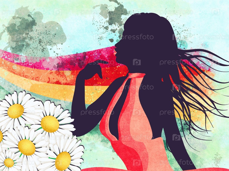 Девушка с радугой и маргаритками