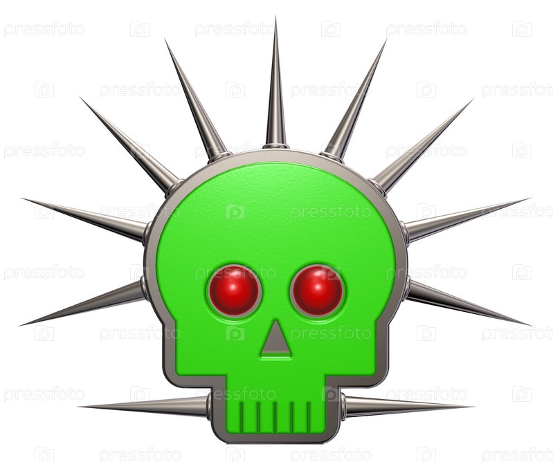 Череп с шипами на белом фоне. 3d Иллюстрация