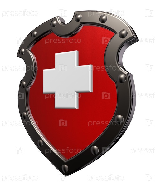 Металлический щит со швейцарским флагом. 3d иллюстрация