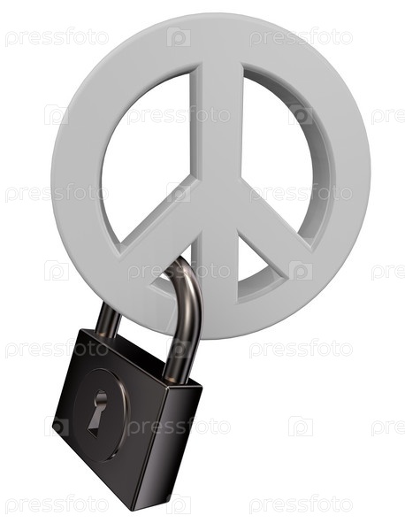 Символ мира и навесный замок на белом фоне. 3d Иллюстрация