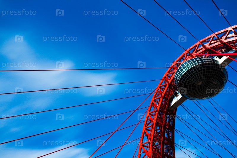 Строительство красного висящего моста над Москвой-рекой