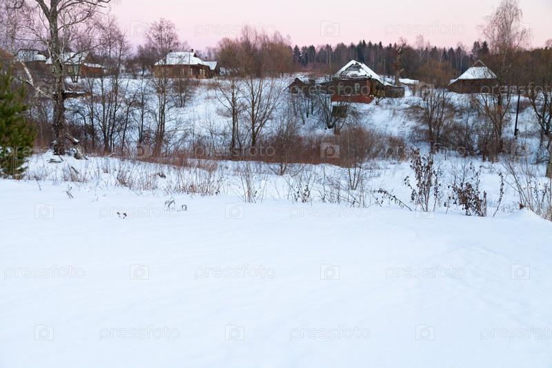 Деревенские дома под снегом
