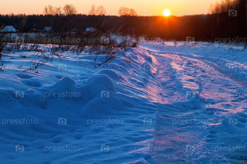 Закат над снежным полем
