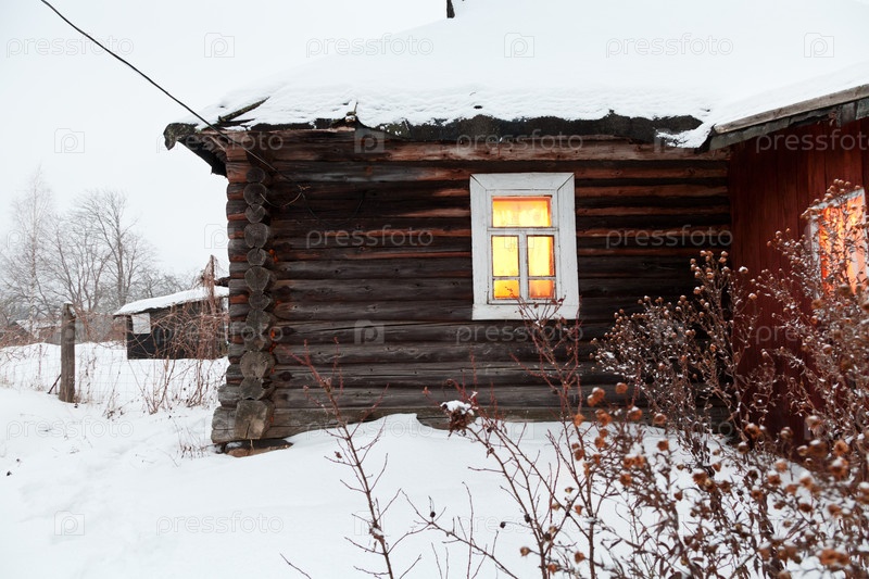 Желтое освещенное окно сельского дома