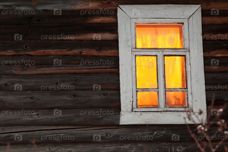Желтое освещенное окно сельского дома