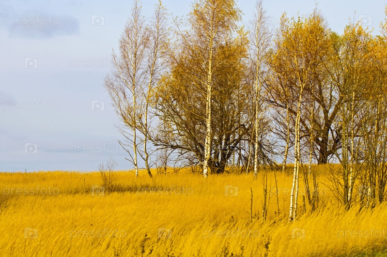 Деревья среди желтой травы в поле