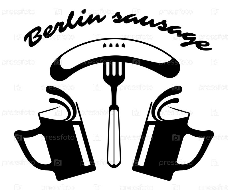 Колбаса на вилке и две кружки пива