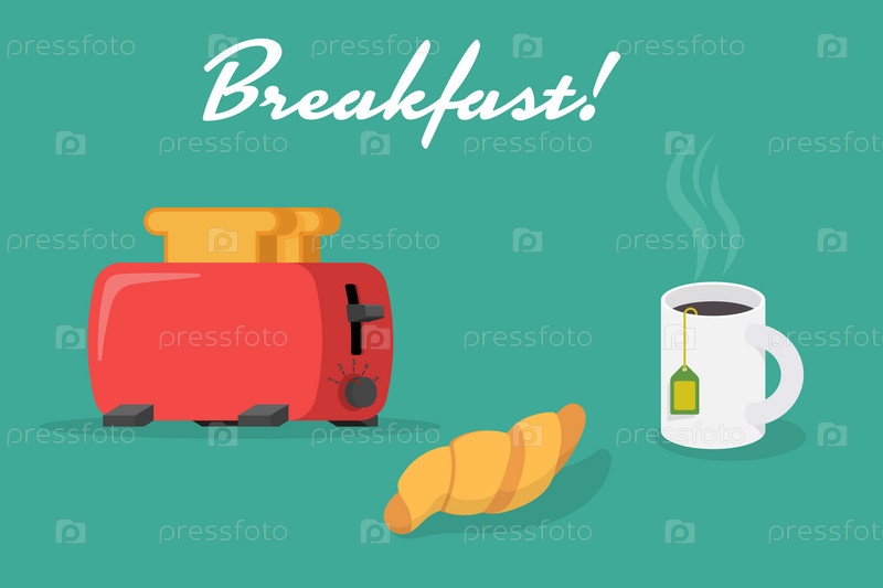 Завтрак с тостером, круассаном и чаем