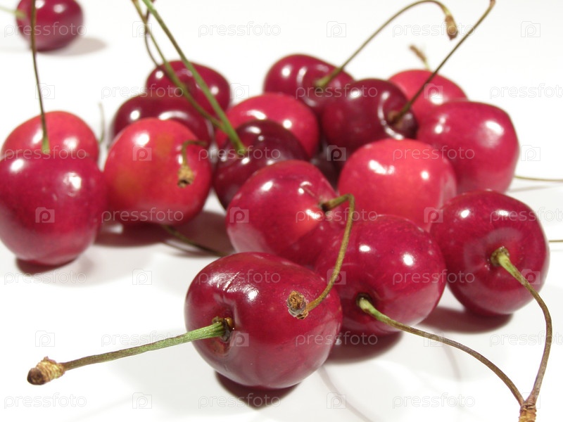 Спелая вишня на белом фоне