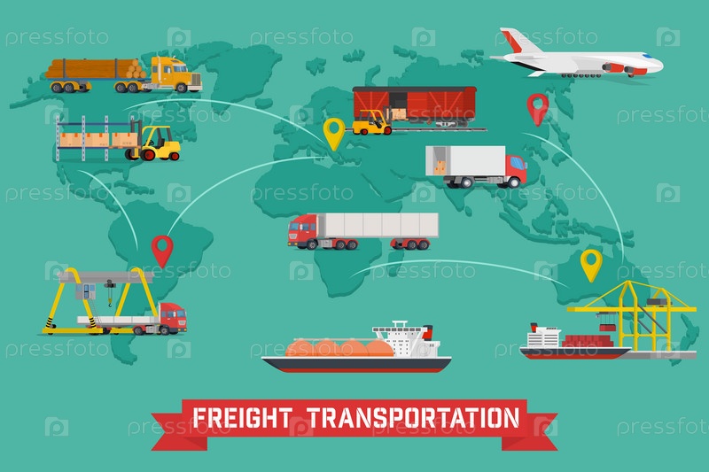 Грузовой транспорт и упаковка инфографика