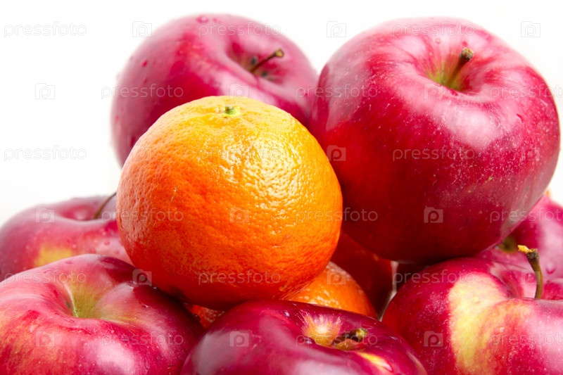 Свежие спелые мандарины и яблоки как символ урожая