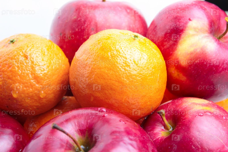 Свежие спелые мандарины и яблоки как символ урожая