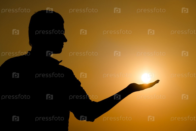 Молодой человек, держащий солнце на руке