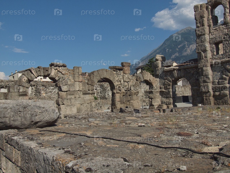 Руины римского театра в Италии Аост