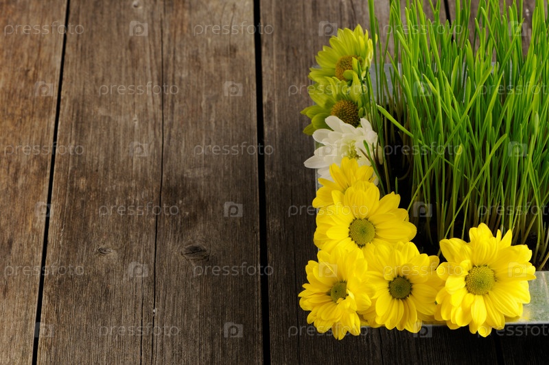 Трава и цветы на древесине