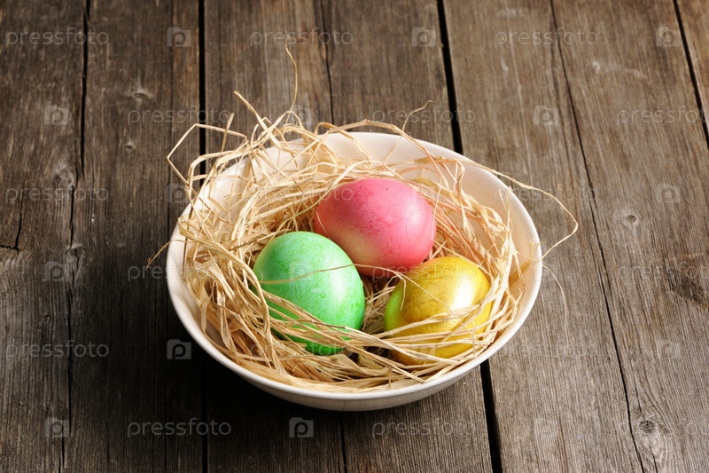 Цветные пасхальные яйца в гнезде