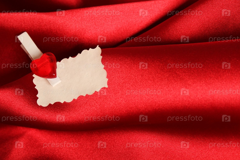 Открытка ко Дню Святого Валентина на красном атласе