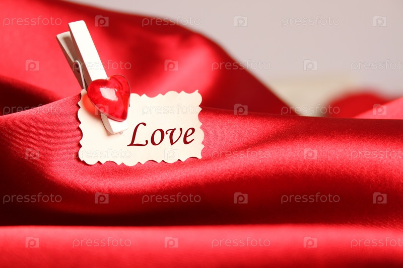 Открытка ко Дню Святого Валентина на красном атласе