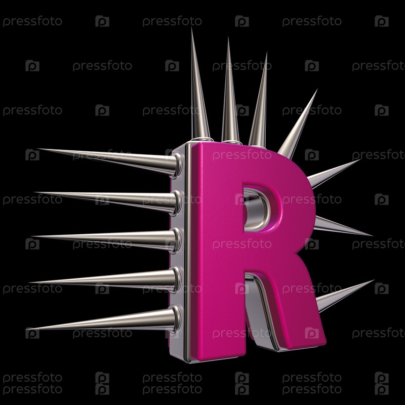 Буква r с металлическими шипами на черном фоне - 3d иллюстрация