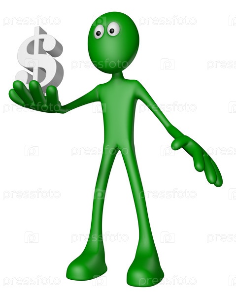 Зеленый человечек и символ доллара. 3D иллюстрация