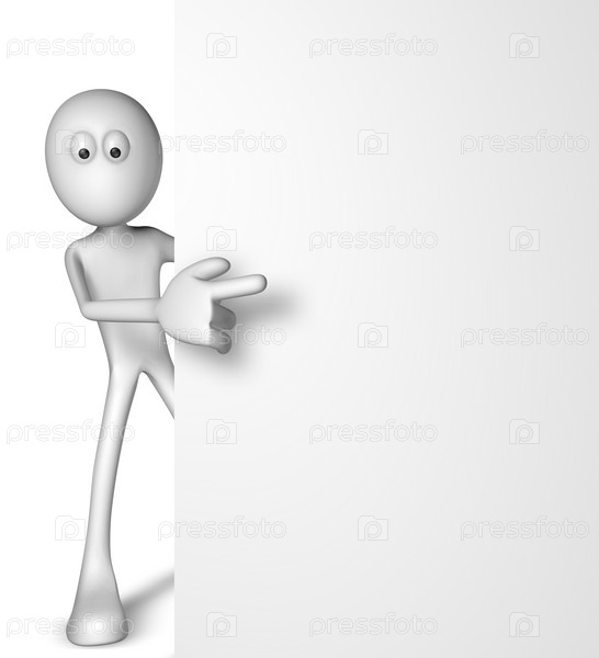 Белый человек и пустая доска. 3D иллюстрация
