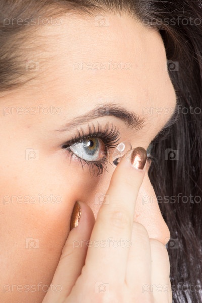 Молодая женщина с контактной линзой