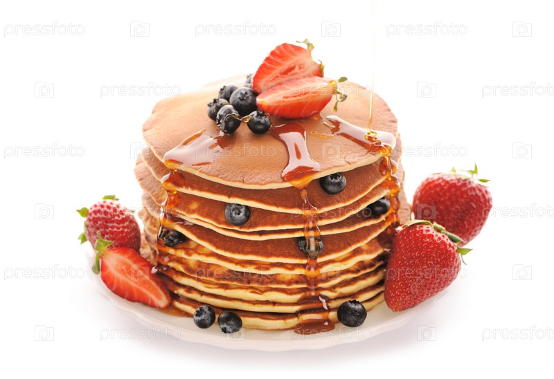Блинчики с клубникой и голубикой