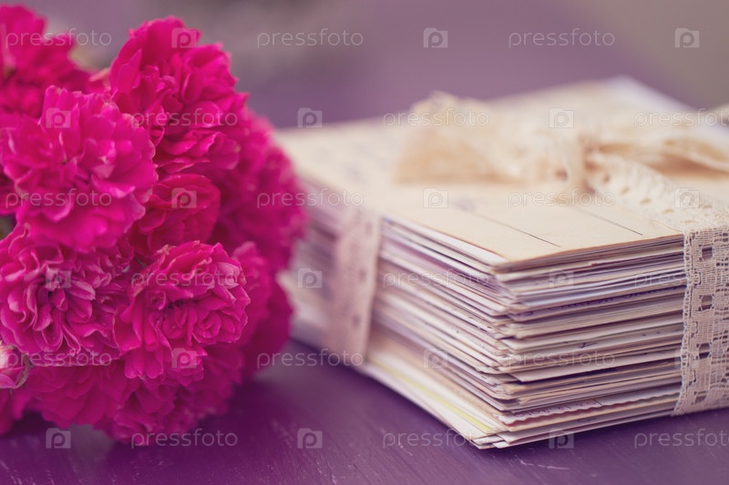 Стопка старых писем с розами