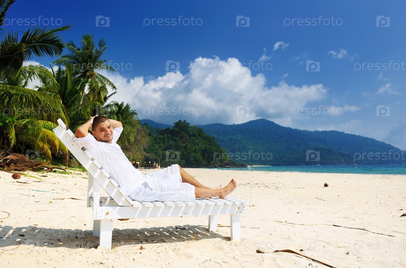 Мужчина расслабляется на пляже