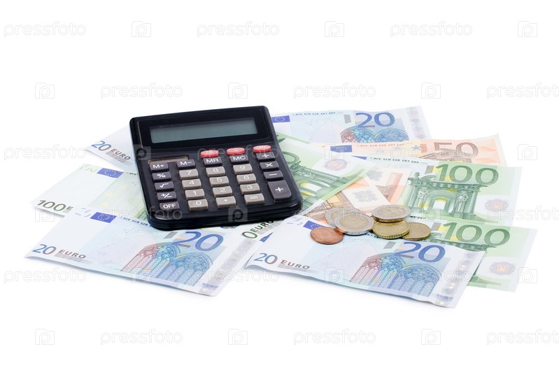Различные банкноты евро и монеты