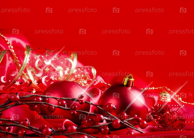 Новогодние шары на красной ткани